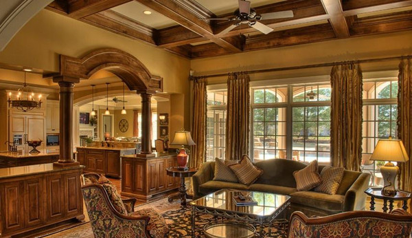 歐式古典風格賓館酒店裝修裝飾等工裝,和別墅裝修裝飾等家裝中,彰顯大氣、貴氣目的必須的表現(xiàn),所以在材質(zhì)上,較多采用櫻桃木、胡桃木等高檔實木以及仿古地磚、歐式壁紙、大理石等,彰顯高貴、典雅的貴族氣質(zhì),并強調(diào)以華麗的裝飾、濃烈的色彩、精美的造型達到室內(nèi)裝修裝飾雍容華貴的裝飾效果,由此,歐式客廳裝修裝飾的頂部喜用大型燈池,并用華麗的枝形吊燈營造氣氛。